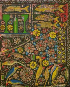 Saw this work on exhibit at the Brazilian Cultural Center in Maputo, Mozambique. Unfortunately I can’t find much online about the artist. 🙁