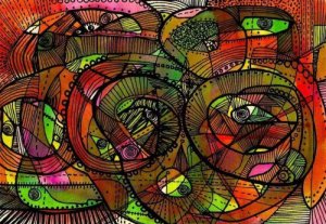 Layered collage /drawing for the Orisa Sangó/Shangó